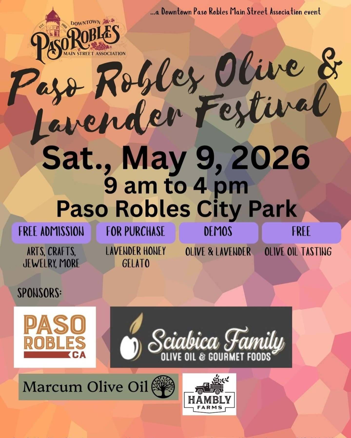¡Hola, familias! El Festival del Olivo y la Lavanda de Paso Robles vuelve en 2026 para llenar el centro de Paso Robles de aromas, sabores y creatividad.