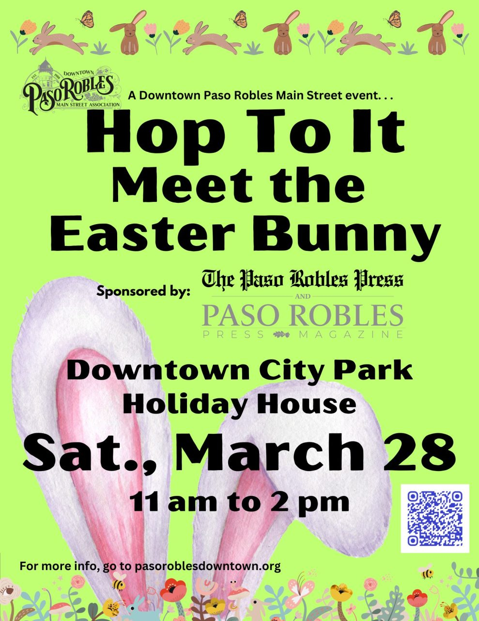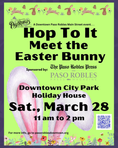 Bring the kiddos to “Hop To It – Meet the Easter Bunny” for a sweet springtime photo opportunity in the Downtown Paso Robles Park. Snap a picture, enjoy the fresh air, and make a fun family memory. When: Saturday, March 28 |11AM–2PM Where: City Park (Holiday House area) Cost: Free — just bring your camera!