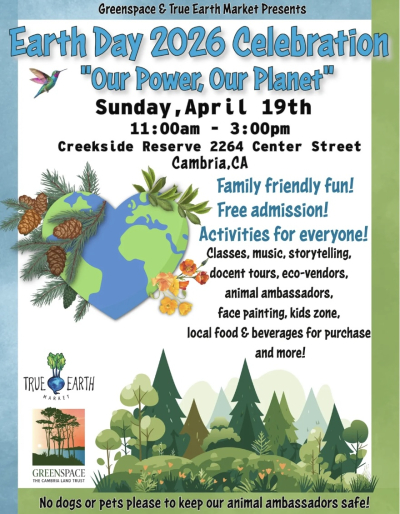 Family-Friendly Fun at the Earth Day 2026 Celebration in Cambria! Join the festivities Sunday, April 19th from 11 AM – 3 PM at Creekside Reserve for a whimsical day of nature, learning, and family adventure.