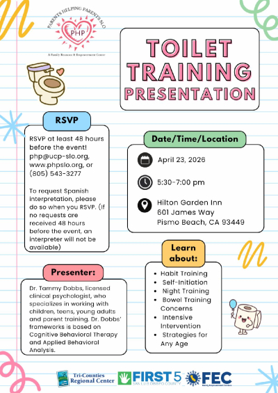(805) 543-3277 |Hosted in partnership with Tri-Counties Regional Center, First 5 San Luis Obispo County, and the Family Empowerment Centers.