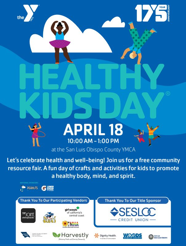 Join our friends at the SLO YMCA on Saturday, April 18th from 10am - 1pm for a day that is all about healthy habits, happy kids, and family fun! Check out crafts, activities & community vendors. Bring the whole family and celebrate healthy living—the fun way!