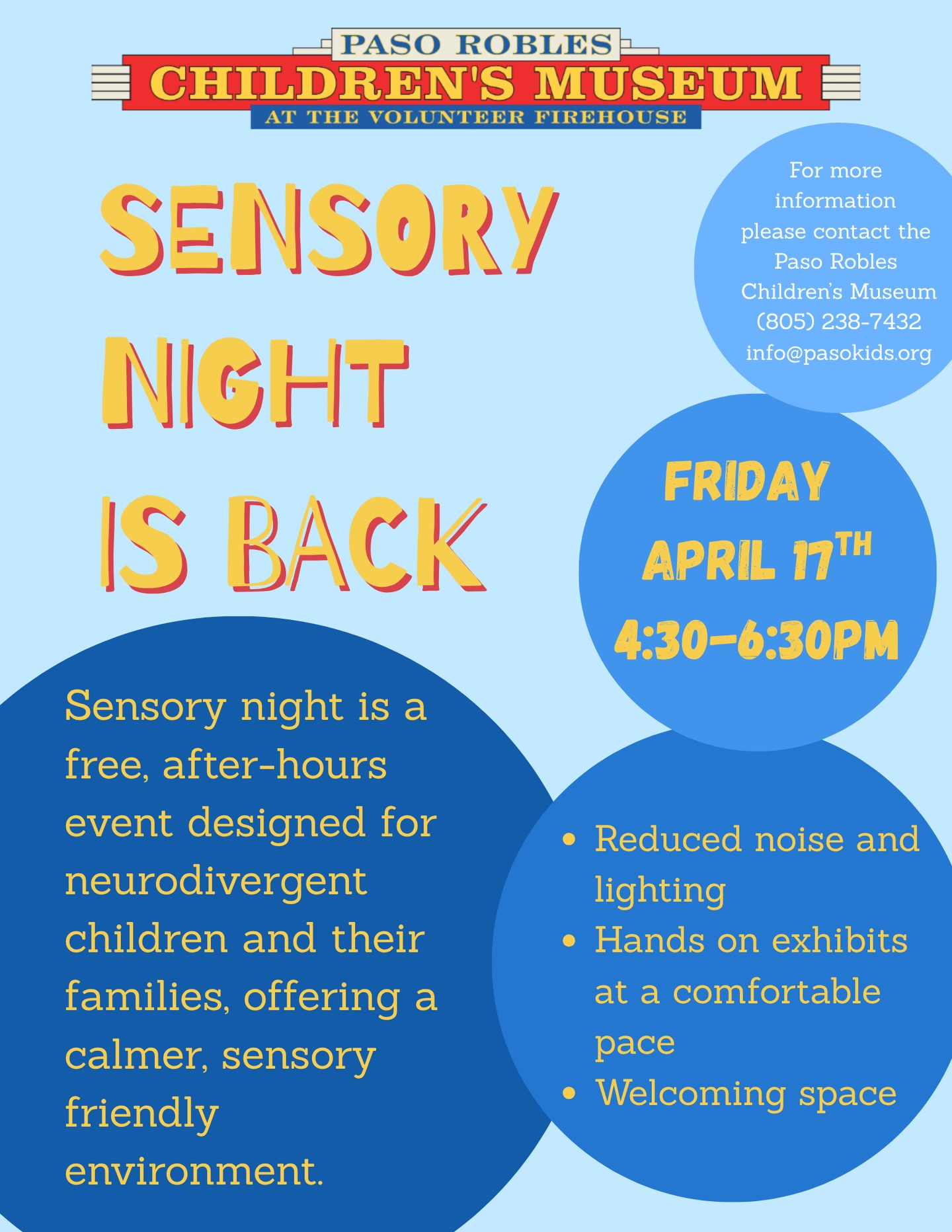 Friends, here's a special invitation for a safe-space, Sensory Night at the Paso Robles Children’s Museum. This after-hours event is designed for neurodivergent children and their families to enjoy the museum in a calm, welcoming, and sensory-friendly environment.